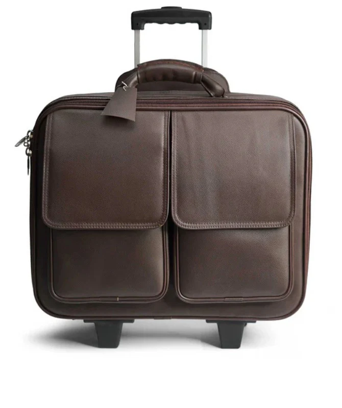 Charitable to commuting and work travels, the roomy main compartment is roomy enough to accommodate laptops, files, and garments with the same ease. This bag has solid bottom feet to make it stand upright and easy to maneuver, cushioned leather handle, and easy-rolling wheels – it is both functional and fashionable and makes a perfect presentation. Perfect baggage to carry on or as a companion to an office on the move.