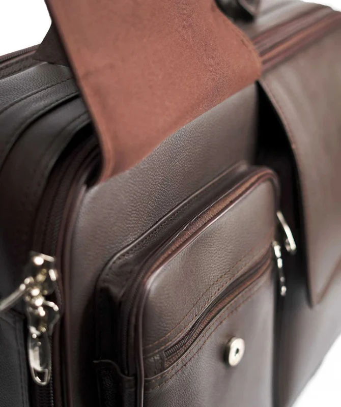 Be prepared and move in executive style with this quality leather business trolley bag, created as part of the new generation of busy professionals on the move. Made out of a thick, durable leather in a deep brown shade, this bag has two front flap compartments that allow one to access documentation, chargers or whatever a person needs at one time.