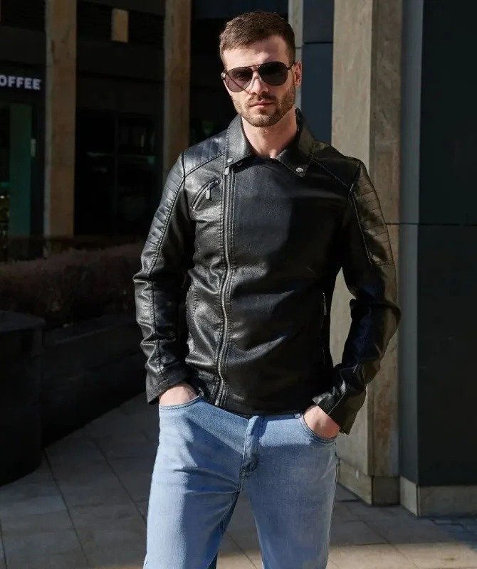 combines rugged charm with modern comfort. Designed for the bold and confident man, this jacket features quilted detailing on the shoulders and sleek zip accents for an authentic biker vibe. Perfect for casual outings or night rides, it adds effortless style to any outfit. Crafted from premium faux leather, it ensures both durability and a smooth, comfortable fit.