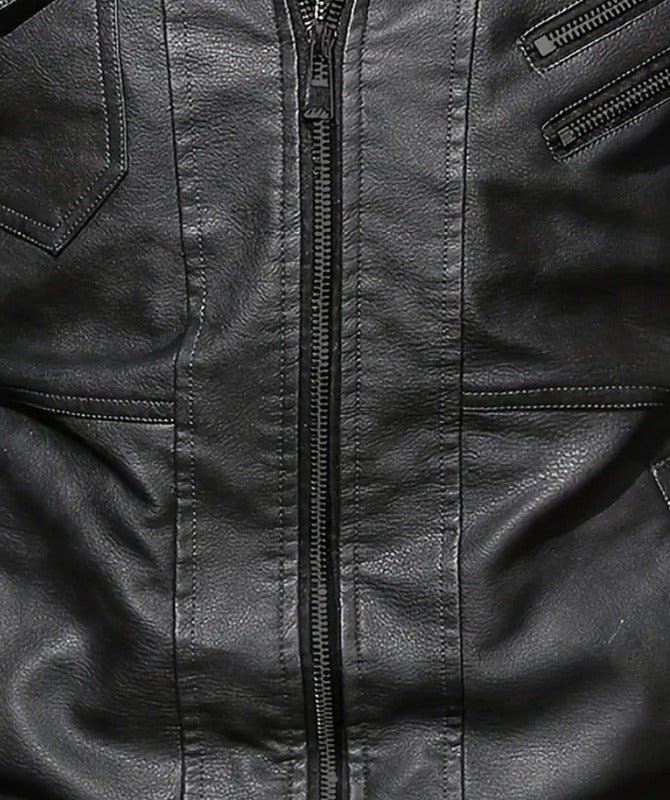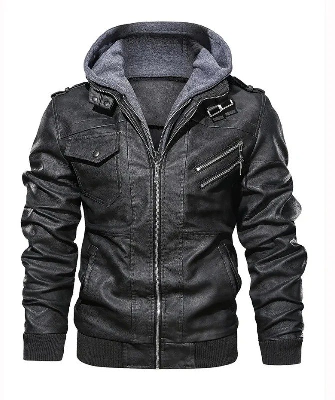 Men’s Black Faux Leather Biker Jacket with Hood | Stylish Motorcycle Outerwear