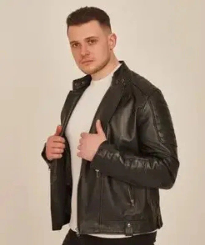 Upgrade your wardrobe with this Men’s Black Leather Biker Jacket, designed for bold and