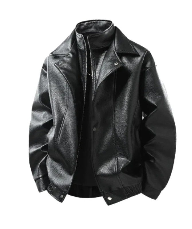 Men’s Black Leather Bomber Jacket | Classic PU Leather Jacket for Stylish Everyday Wear