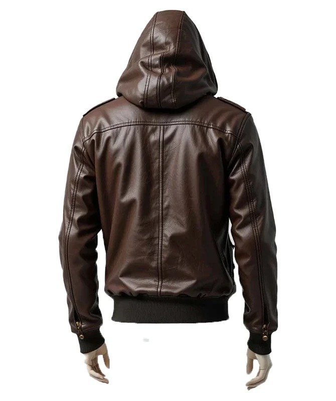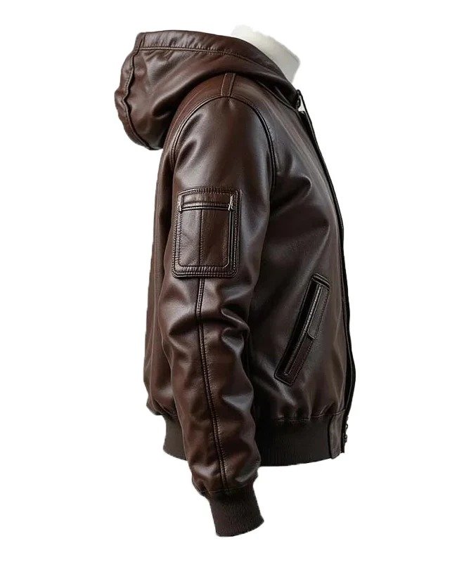 JW Leather Men’s Brown Hooded Bomber Jacket – Real Sheepskin Leather, Street-Style Outerwear with Utility Pockets