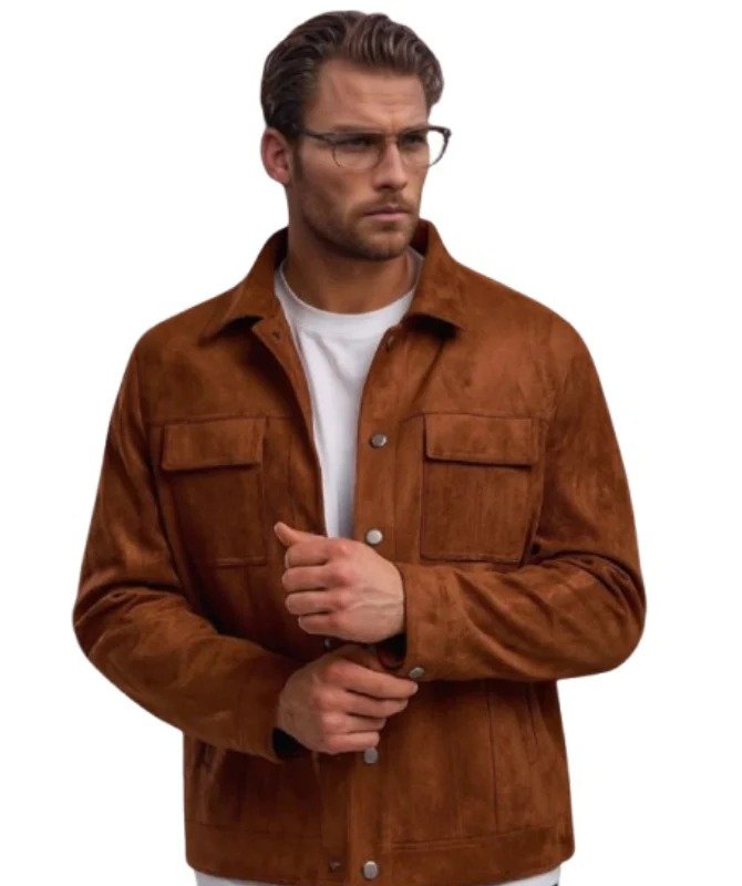 Perfect for casual outings, weekend plans, or evening wear, this jacket adds instant sophistication to any outfit. Its warm brown tone, structured fit, and smooth suede feel make it a versatile essential for style-conscious men looking for comfort, elegance, and durability in one piece.