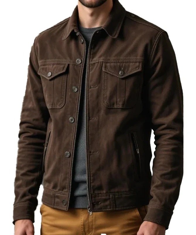 JW Leather Men’s 2025 Suede Trucker Jacket – Brown | Modern Front & Back Design