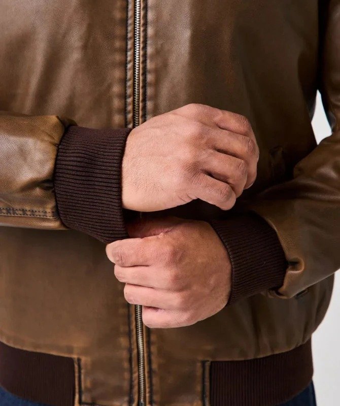 Designed with a classic bomber silhouette, it features a front zip closure, ribbed cuffs and hem, and side pockets for a functional yet stylish appeal. Whether you’re heading out for a night on the town or upgrading your weekend wardrobe, this leather jacket ensures you stay warm, confident, and effortlessly cool.