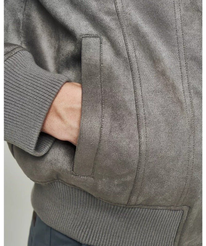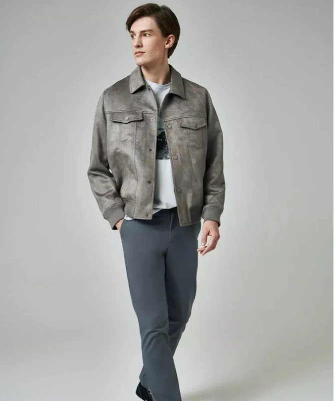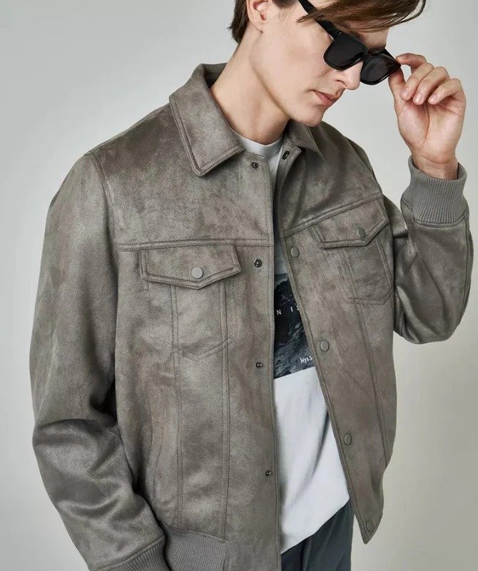 Upgrade your wardrobe with this Men’s Grey Suede Leather Jacket, crafted from premium