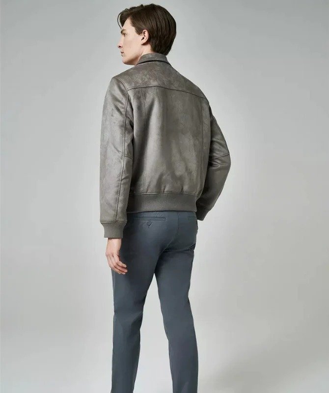 Men’s Grey Suede Leather Jacket – 100% Genuine Sheep Leather | Classic Streetwear