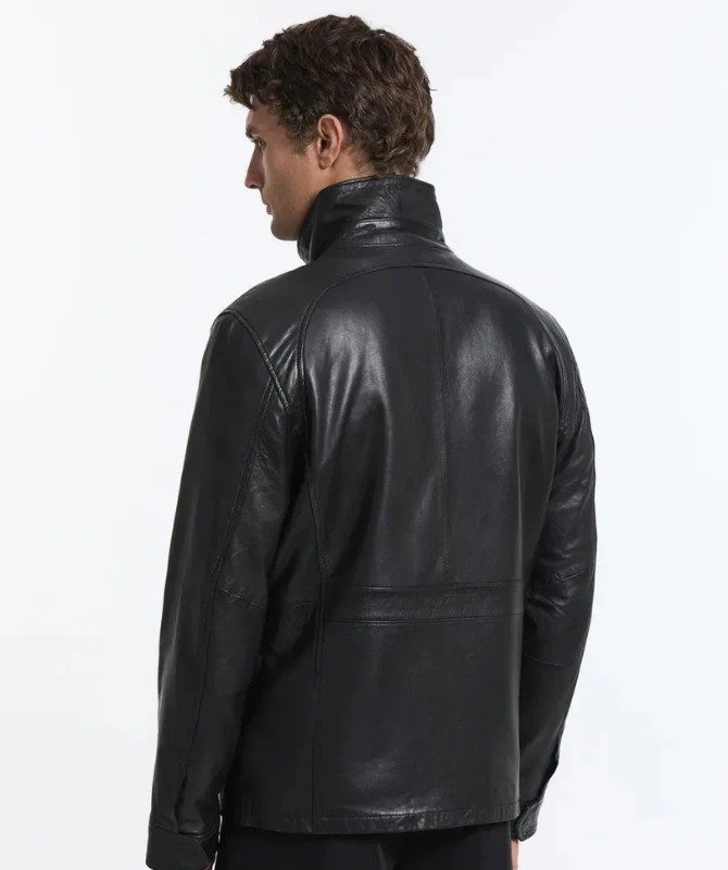 Men’s Premium Black Sheep Leather Field Jacket – Classic 4-Pocket Design