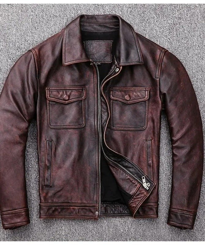 Embrace rugged sophistication with this Men’s Vintage Brown Leather Jacket, expertly