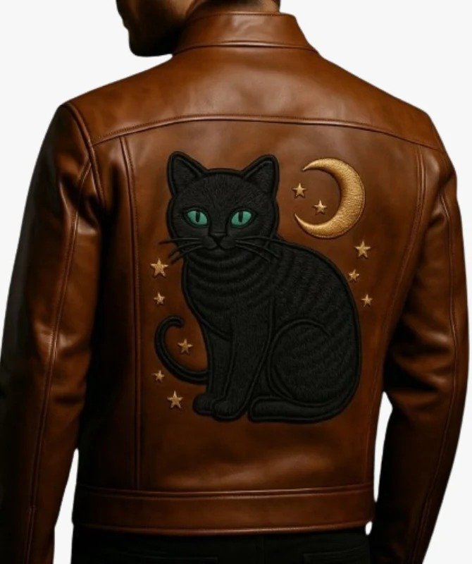 hand-stitched brown leather jacket, which features an eye-catching black raven embroidery at the back — the symbol of mystery, and freedom. Made for individuals who appreciate quality craft and daring fashion, this jacket embodies luxuriousness and edginess.