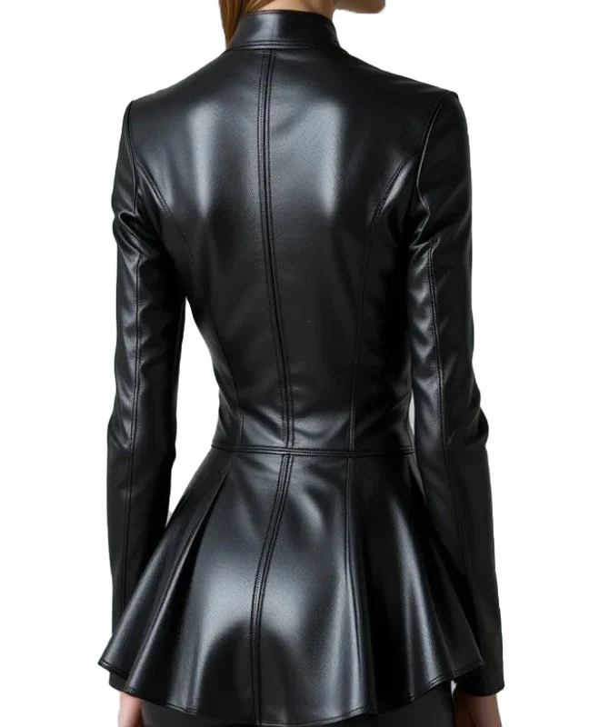Women’s Black Peplum Jacket Sculpted Fit | Premium Sheep Leather Outerwear