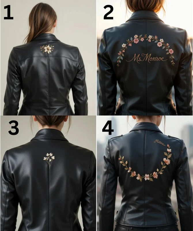 Stylish back embroidery, and this is what makes the piece really special, that is a crescent-shaped floral vine to be jogged in quiet shades such as dusty rose, ivory, and olive green. In the middle of the floral arc, you are free to add a personal name or phrase (e.g. Ms. Monroe, Mrs. Parker or your name will work) all of which are flat-stitched so they do not appear 3D. Fashion and identity, the two hard-to-combine things become inseparable with this jacket regardless of whether you are a college student, bride, fashion lover or you are gifting something special.