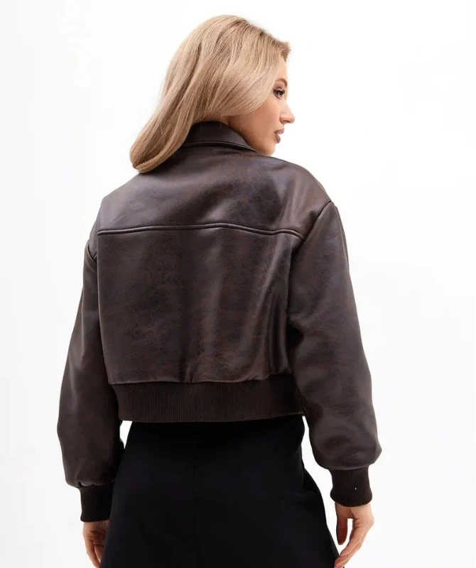 Be the first to review “Women’s Brown Cropped Leather Jacket – 100% Genuine Sheep Leather | Trendy Streetwear Style”