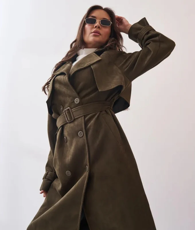 The belted waist cinches perfectly to flatter your figure, while the storm flap adds both style and function. Whether you’re layering it over jeans and a high-neck top or dressing it up for an evening out, this trench coat is your go-to for effortless elegance.