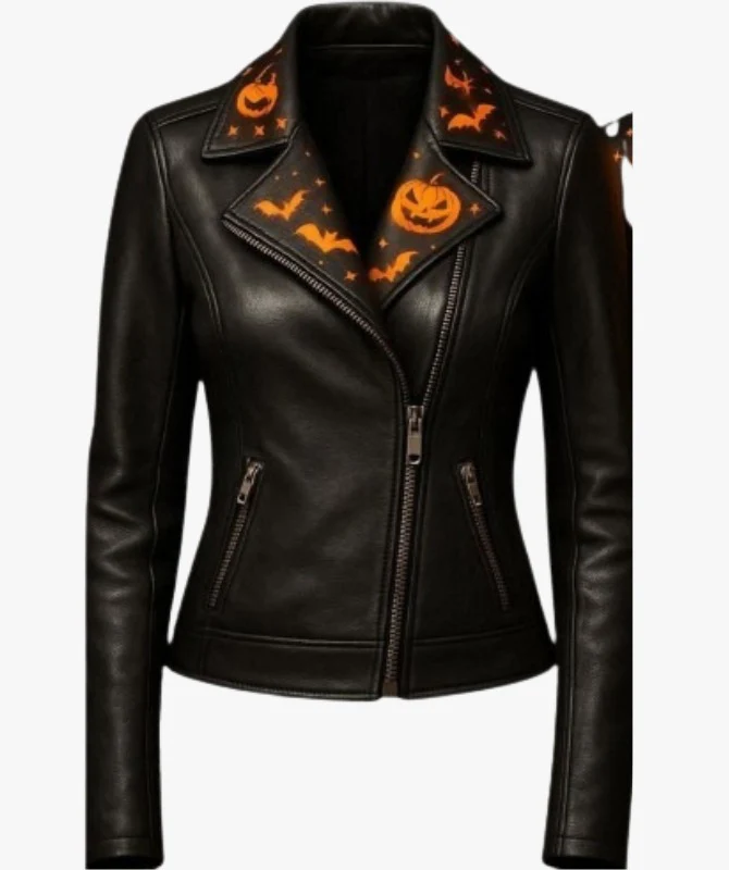 Women’s Halloween Leather Jacket Premium Sheep Leather Pumpkin