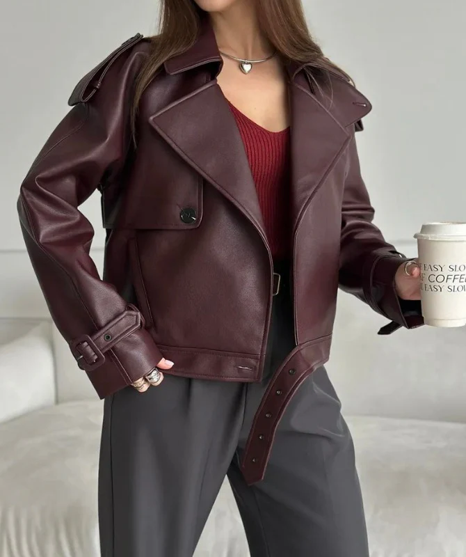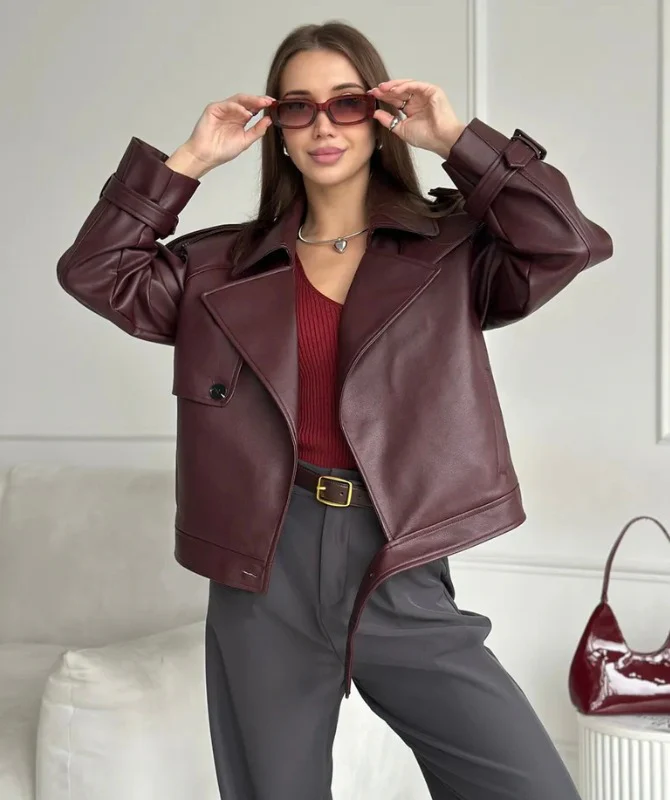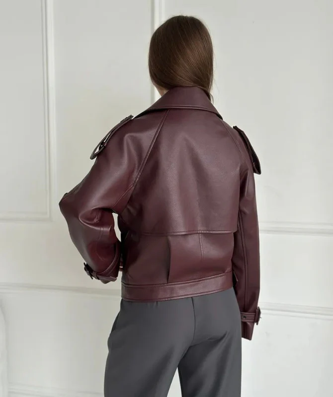 Women’s Maroon Sheep Leather Jacket – Elegant Biker Style Genuine Leather Outerwear