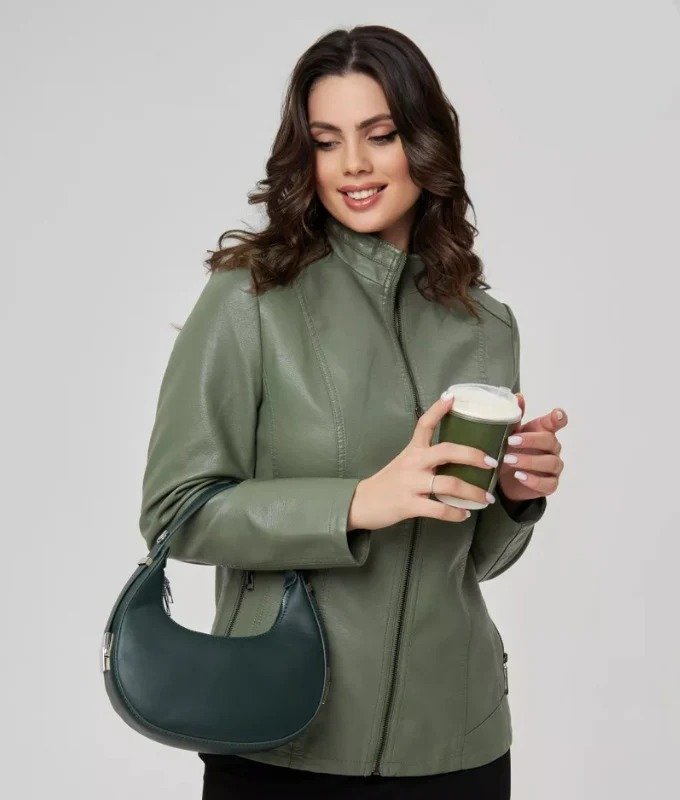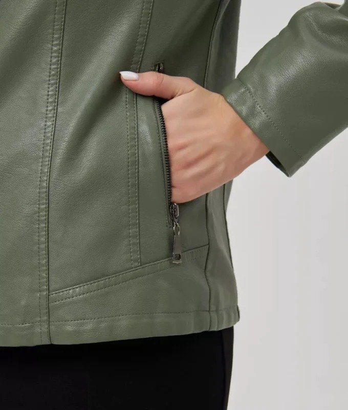 Women’s Olive Green Genuine Sheep Leather Jacket – Slim Fit Moto Style | Premium Real Leather Outerwear