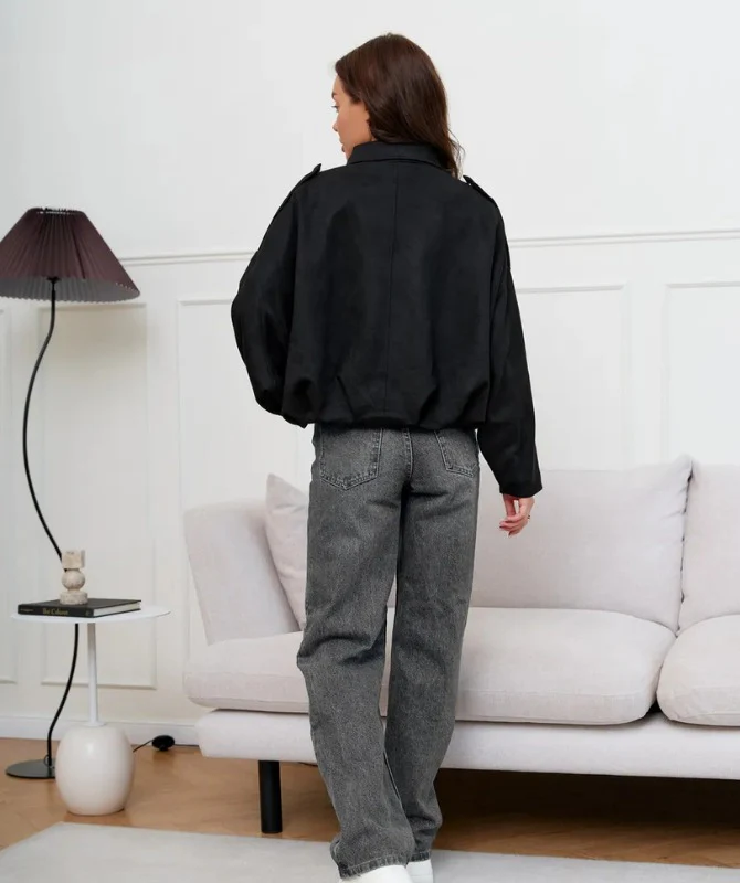 Its relaxed, oversized silhouette gives off a cool, contemporary vibe while ensuring maximum comfort. The sleek black finish pairs easily with any outfit — from jeans and sneakers to skirts and boots — making it your go-to statement piece for every season.